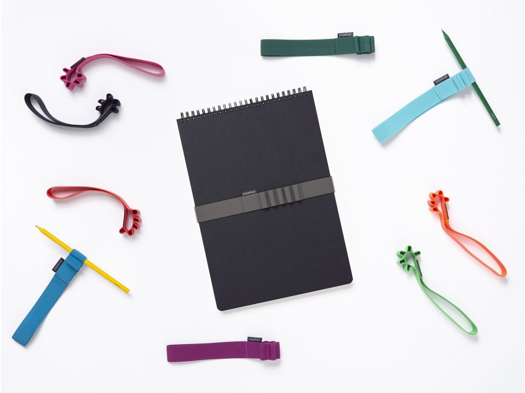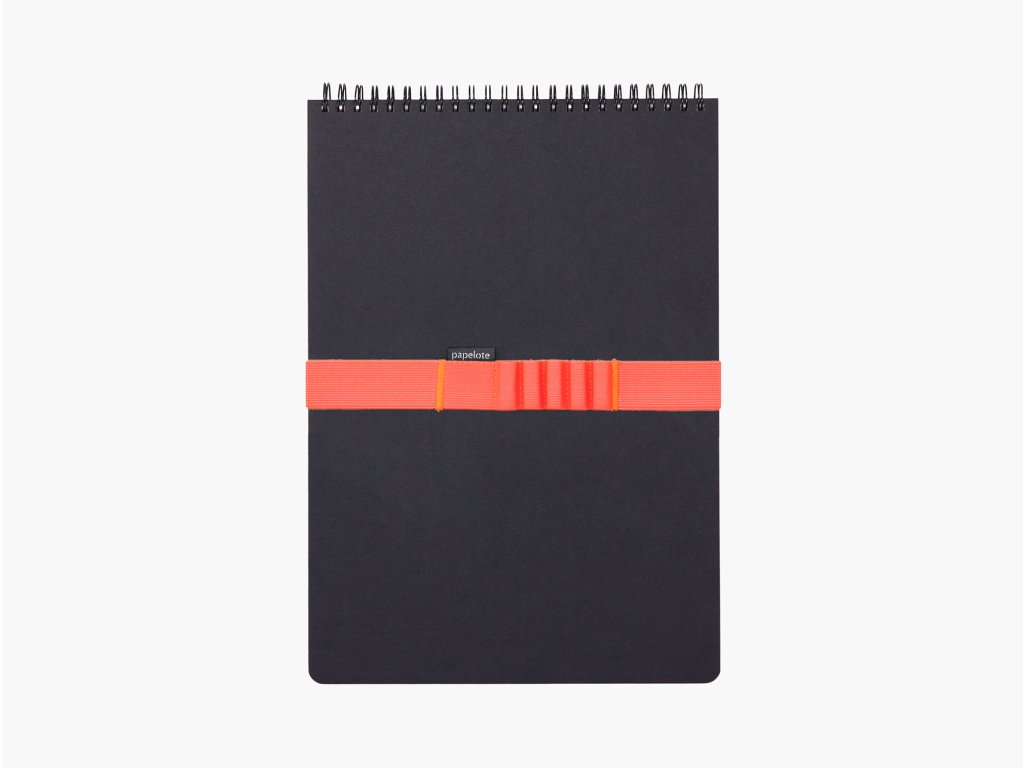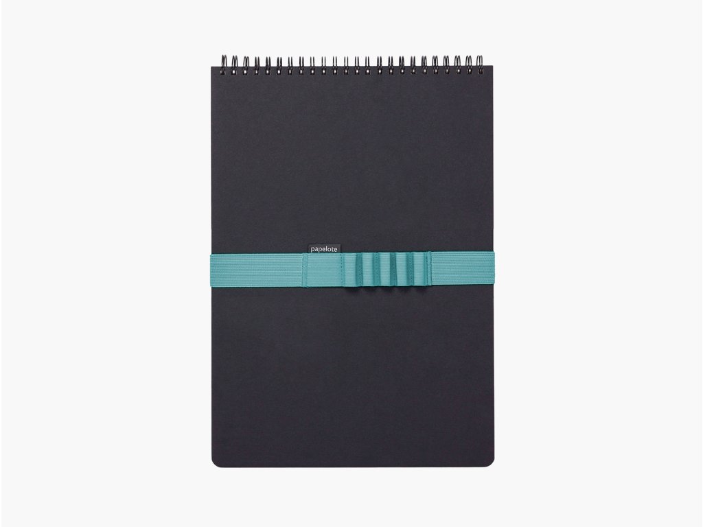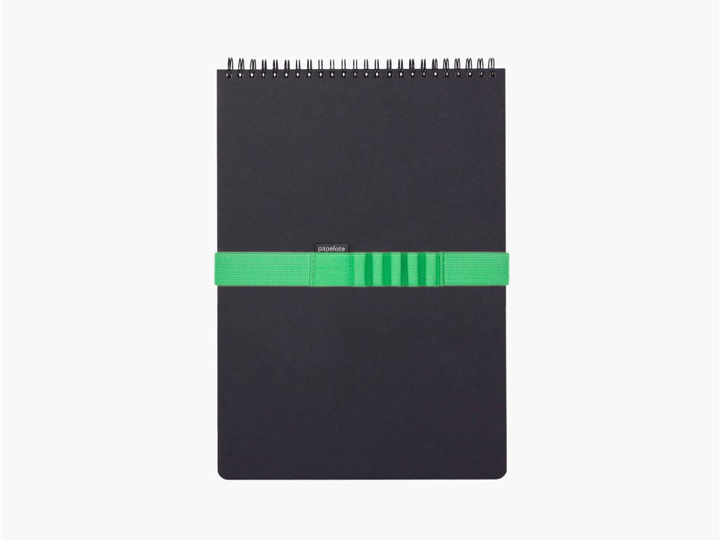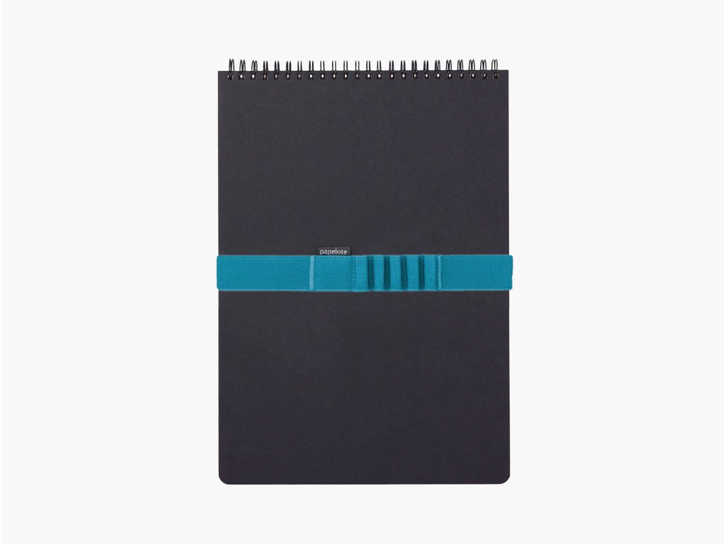 Ikonický papelote blok na poznámky i náčrty. Barevná gumička upoutá pohled, tužky i stránky zavřeného bloku.