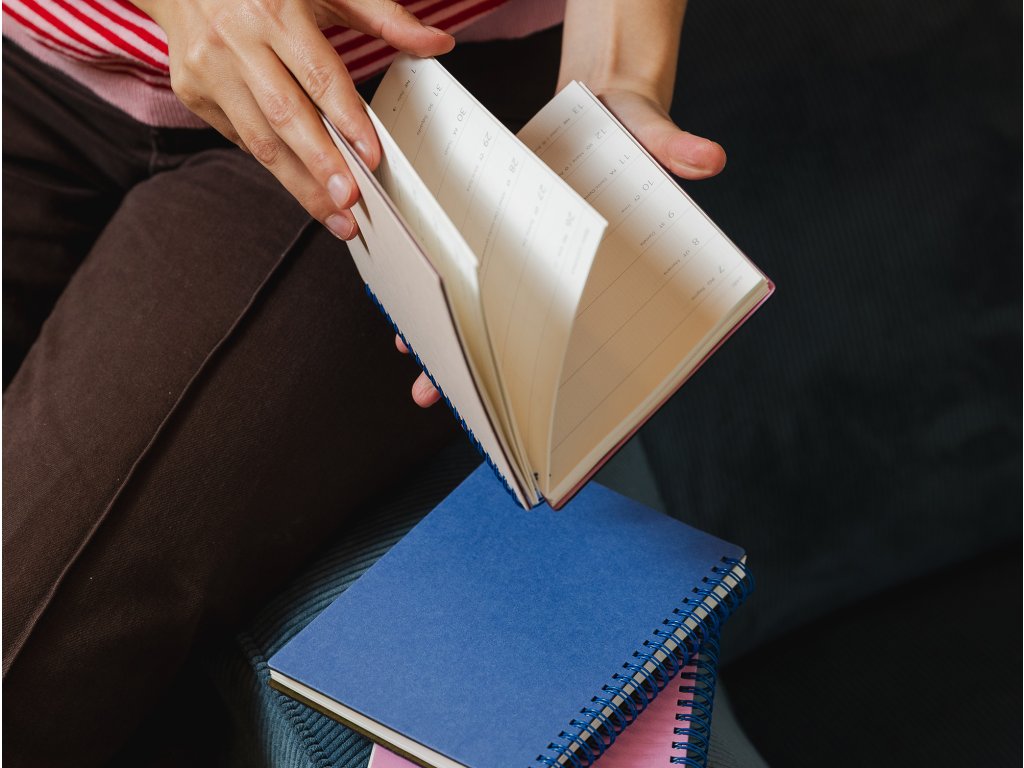 - udržitelnost: Diář jsme vyrobili v Česku z pečlivě vybraných materiálů. Výroba každého kusu probíhá z velké části ručně – od skládání záhybů až po ruční lepení záložky.
