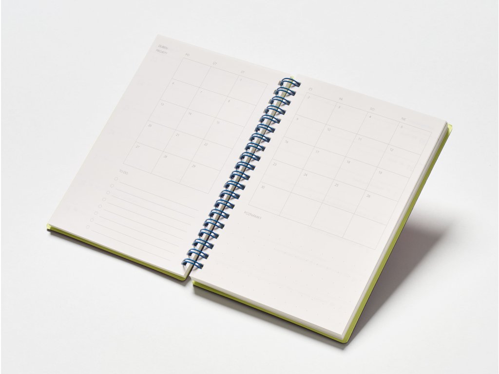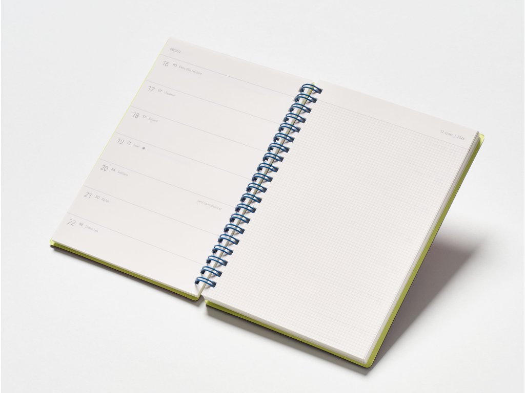 - vazba: kroužková s úzkou modrou spirálou, která nepřekáží při psaní