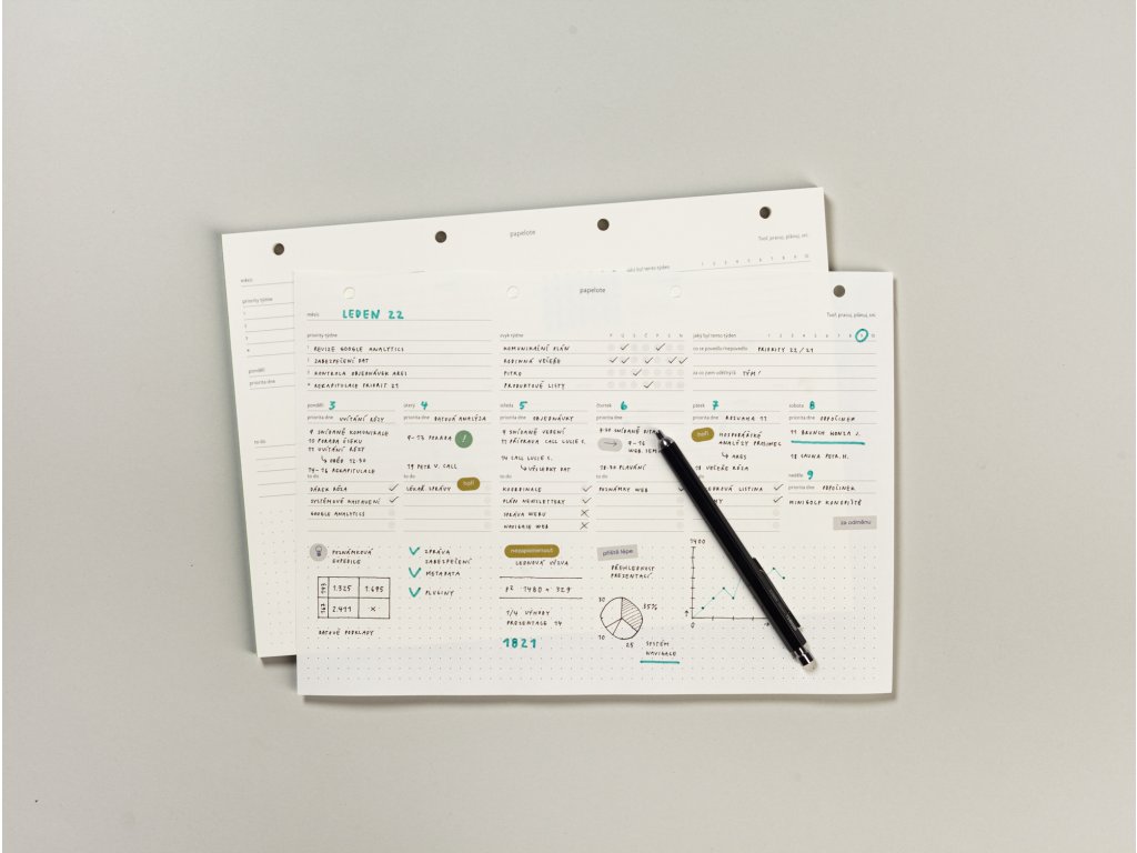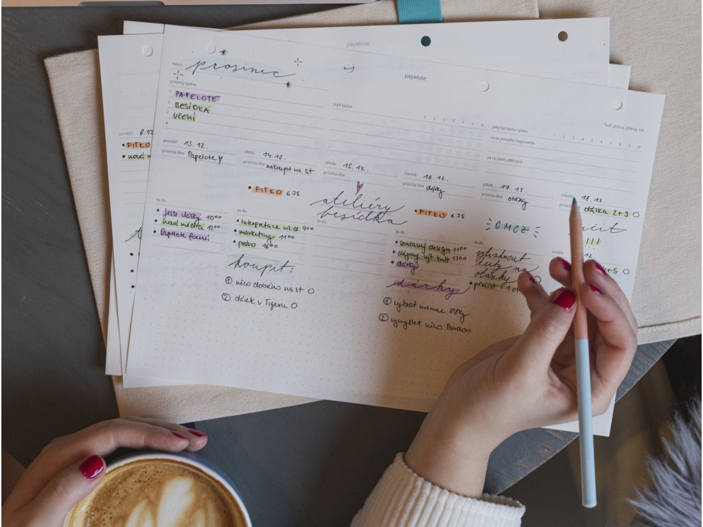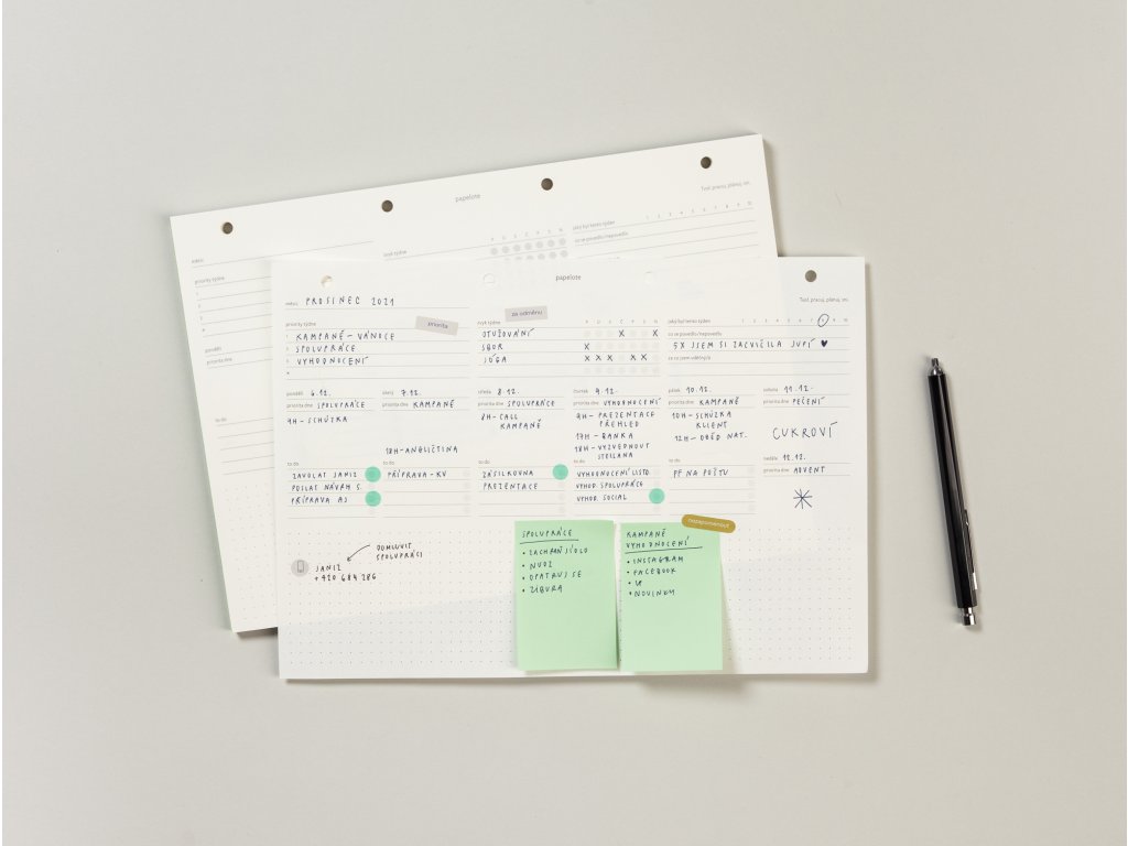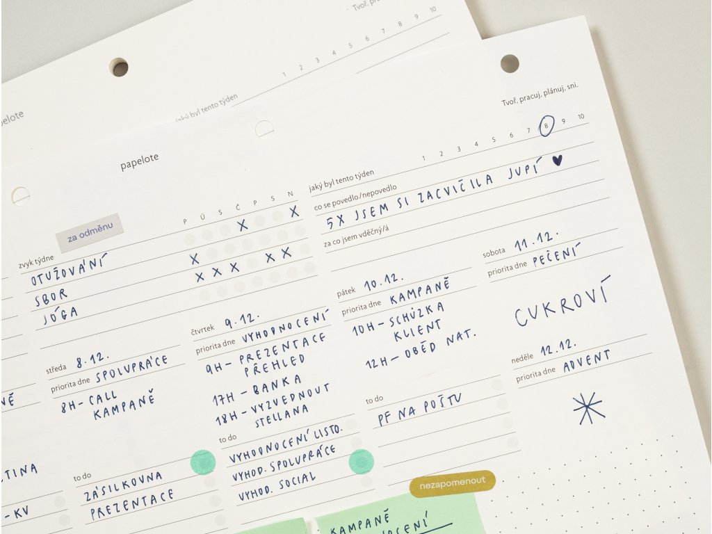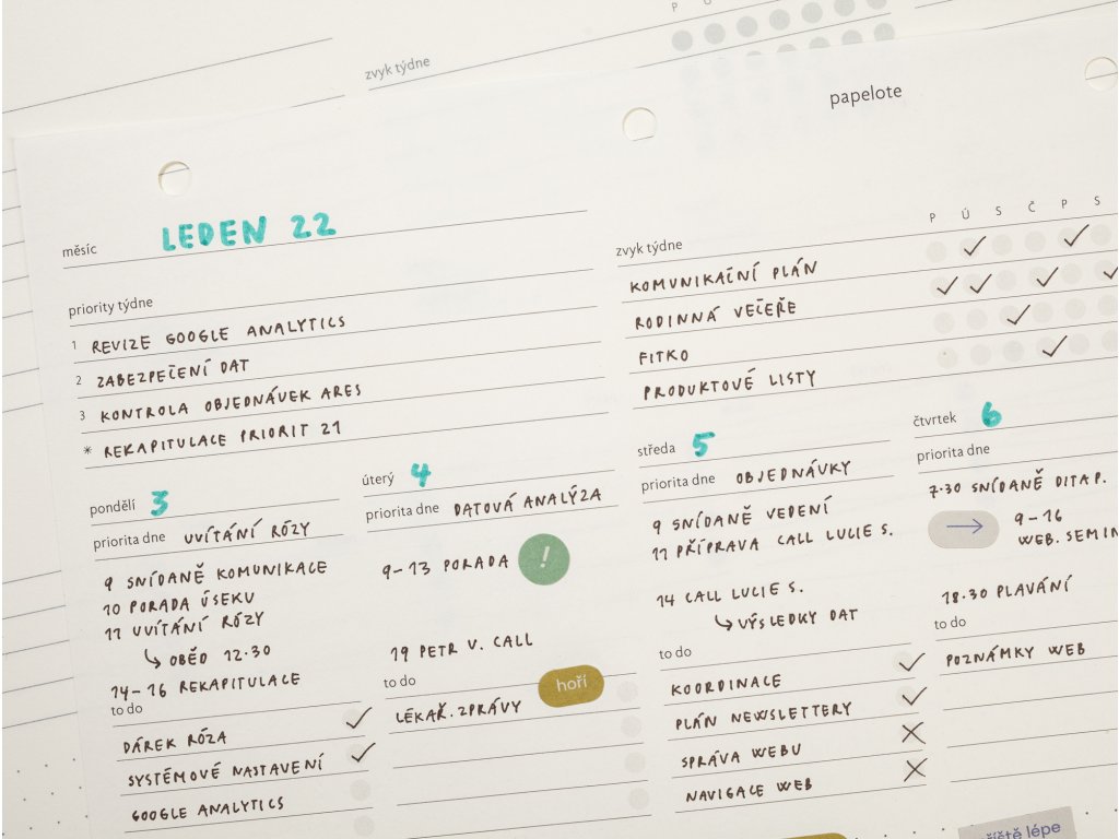 - kam s ním: plánovač funguje efektivně, když na vás číhá každý den na stole, ale hodí se také např. k dalším dokumentům do našich odolných desek z veganské kůže