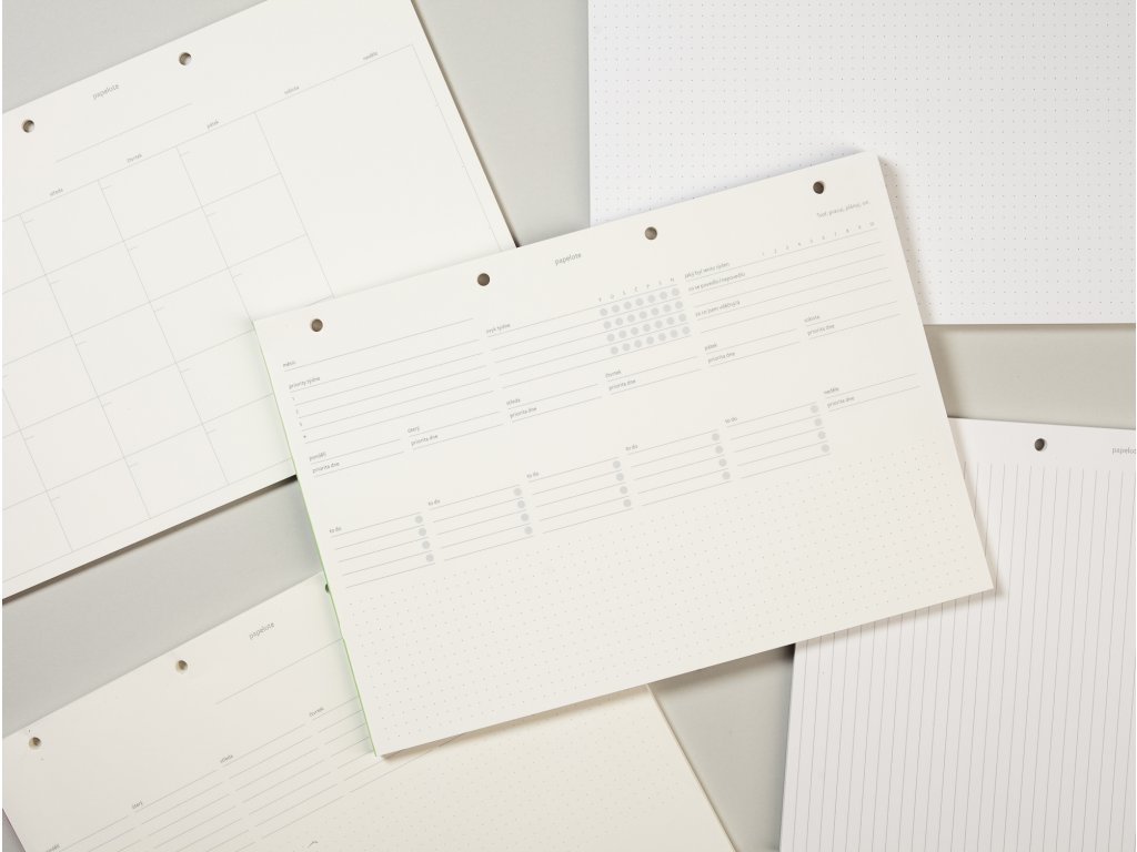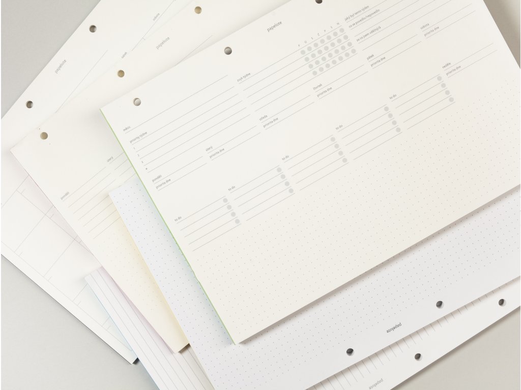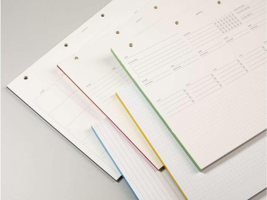 - papír: 90 g/m² • přírodní bílá • bezdřevý certifikovaný papír se sametově hladkým povrchem vyrobený v Evropě • nepropíjí zvýrazňovače ani inkoust a lze na něj bez obav psát i plnicím perem